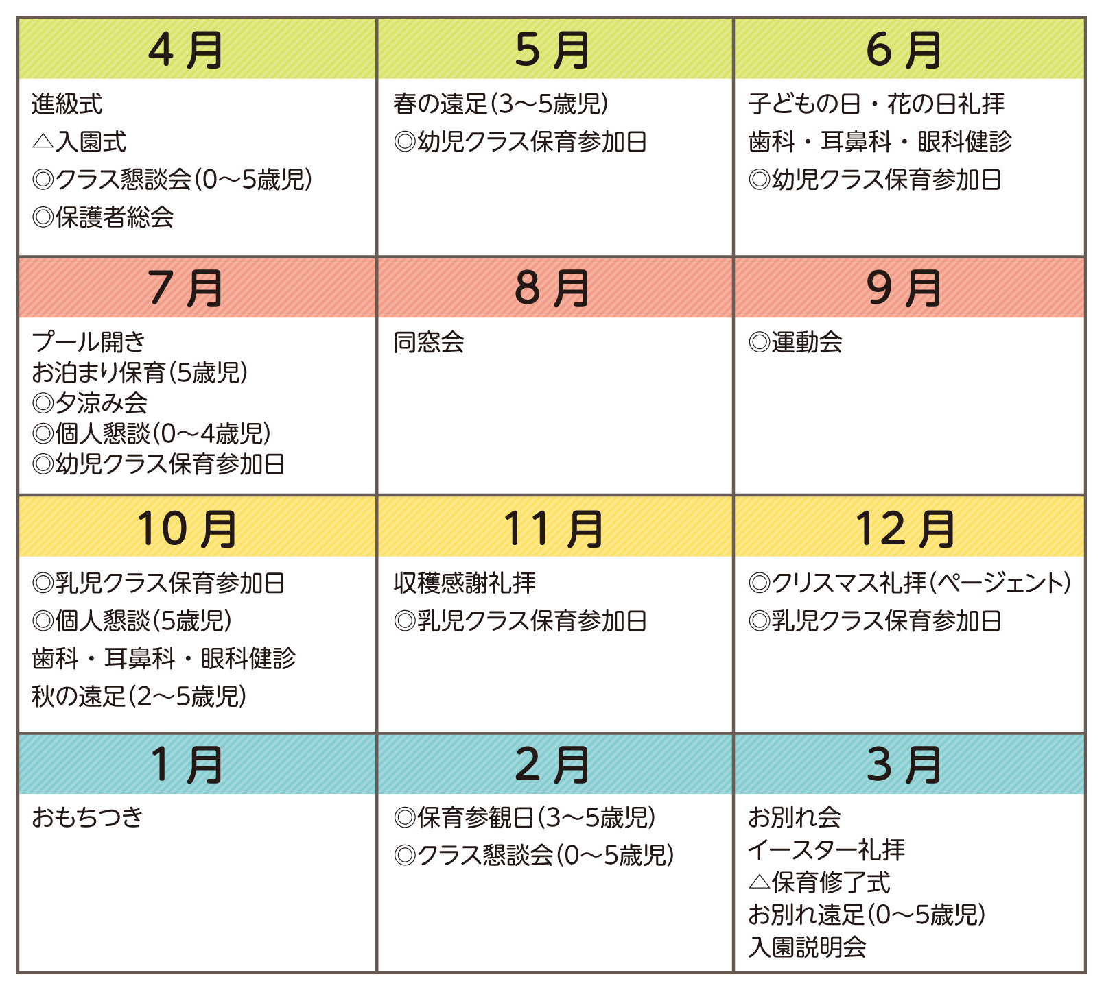 ◎印は保護者参加 △印は一部保護者参加の行事です。